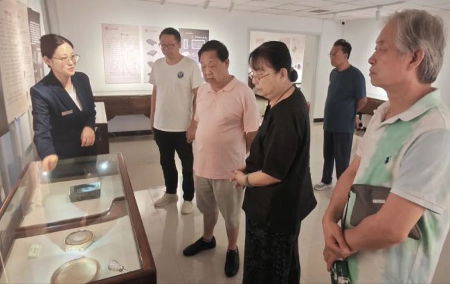 2024年8月6日,国家画院原副院长解永全及夫人、著名书法篆刻艺术家李羊民,北京市朝阳区大屯街道市民活动中心主任李树旺参观北京砚台文化博物馆,砚台文化博物馆副秘书长兼办公室主任孙德勇陪同参观。